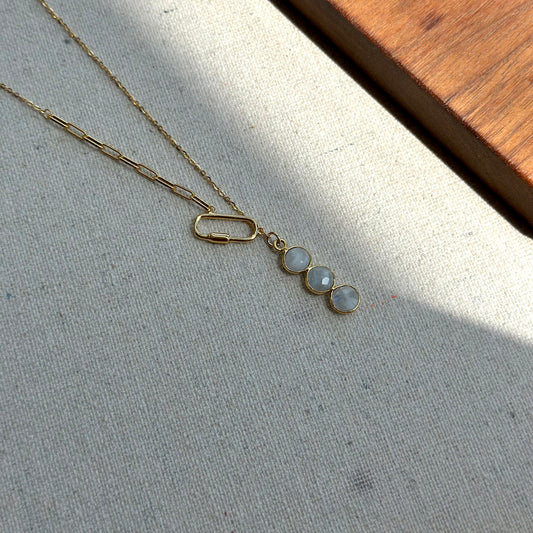 White Agate And Moonstone Asymmetric Gold-plated Necklace