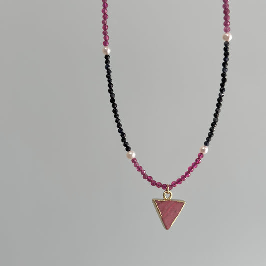 • Ruby Mixed Sapphire Beaded And Rhodonite Necklace