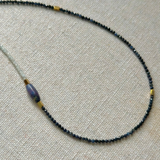 • Lapis And Aquamarine Beaded Asymmetric Necklace