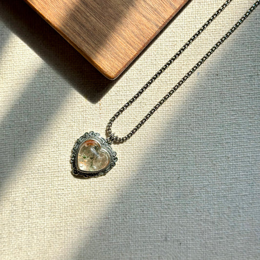 Phantom Quartz Heart Corn Chain Sterling Silver Necklace