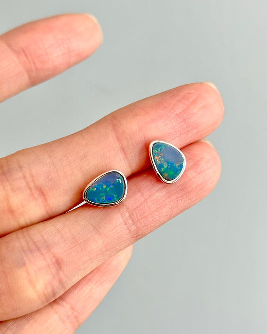 Australian Opal Marine Blue 1.36ct Sterling Silver Ear Stud