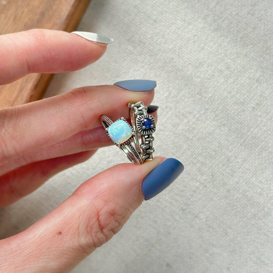 Opal Vintage Inspired Adjustable Sterling Silver Ring