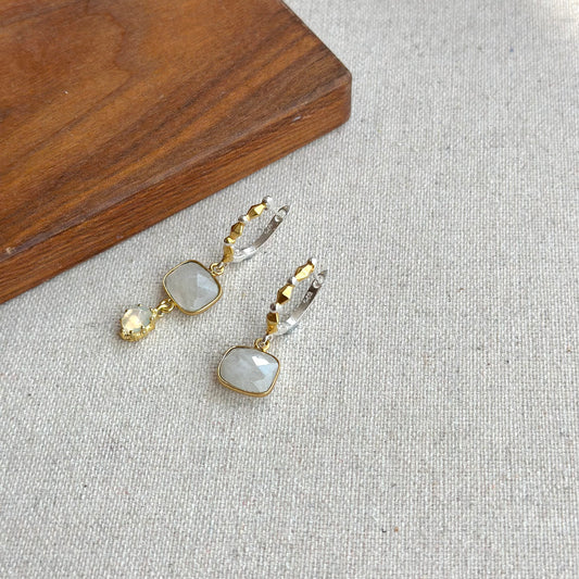Moonstone And Opal Drop Dangle Gold-plated Earring