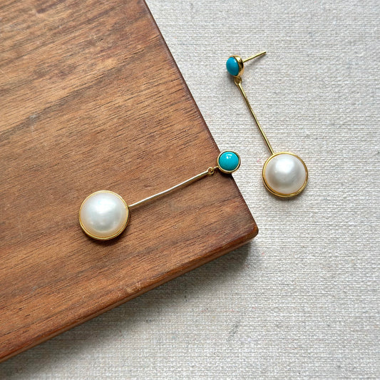 • Turquoise And Freshwater Pearl Gold-plated Earring