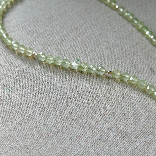 • Prehnite Beaded And Baroque Pearl Front Hoop Toggle Necklace