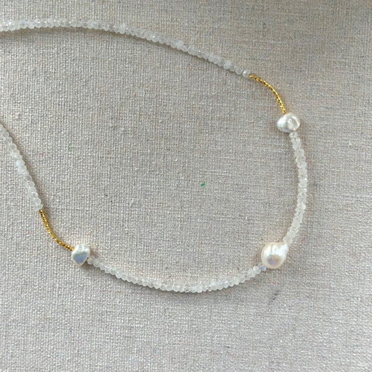• Moonstone And Freshwater Pearl Beaded Asymmetric Necklace