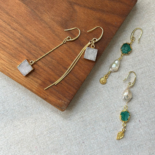 • Malachite And Freshwater Pearl Gold-plated Earring
