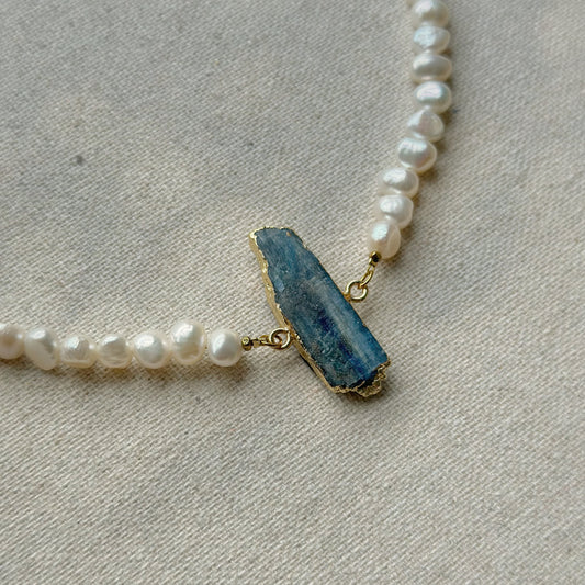 Kyanite And Freshwater Pearl Beaded Necklace