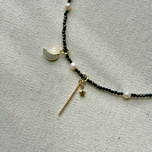 Black Spinel Beaded And Freshwater Pearl Beaded Choker Necklace