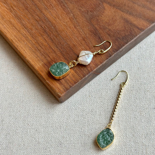 Amazonite And Freshwater Pearl Asymmetric Dangling Gold-plated Earring