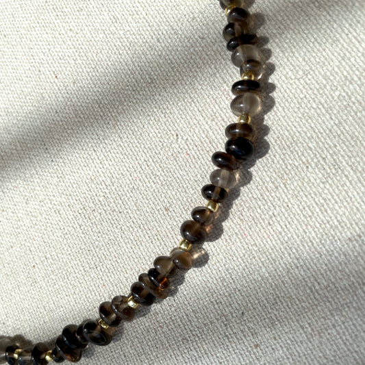 Smoky Quartz and Freshwater Pearl Beaded Choker Necklace