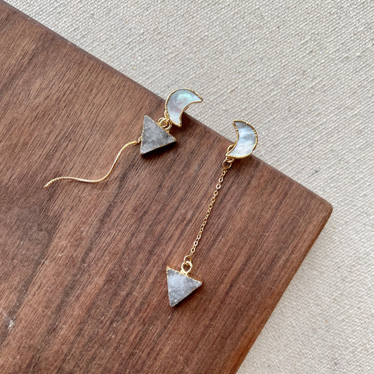 Mother Of Pearl And Druzy Stone Two-way Earring