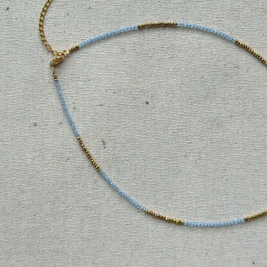 Aquamarine And Freshwater Pearl Asymmetric Beaded Necklace