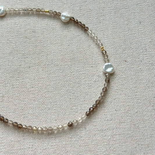 Smoky Quartz And Freshwater Pearl Beaded Asymmetric Necklace