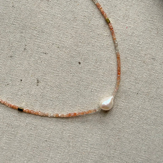 Freshwater Pearl Beaded And Moonstone Necklace