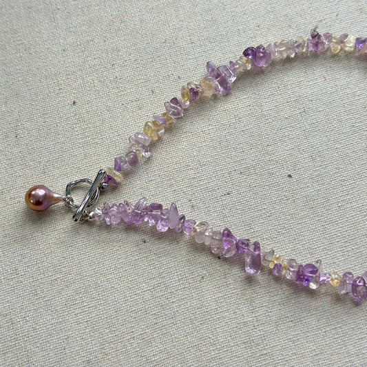 Ametrine Mixed Freshwater Pearl Beaded Hoop Toggle Necklace