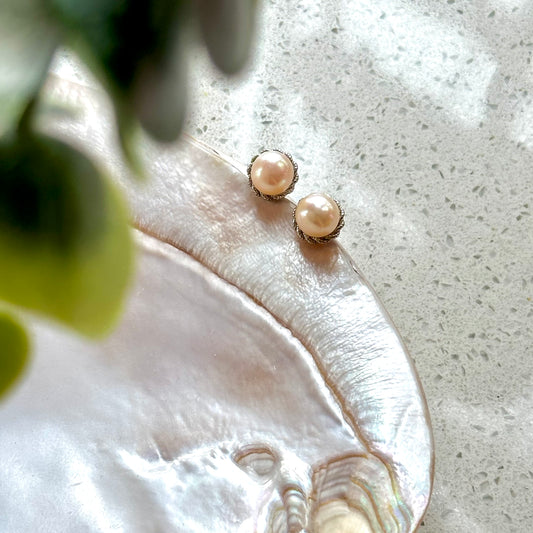 Freshwater Pearl Twisted Sterling Silver Ear Stud