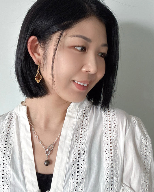 Citrine Stud Mixed Topaz And Freshwater Pearl Earring