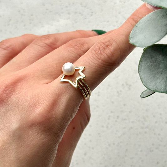Freshwater Pearl Star Asymmetric Gold-plated Ring