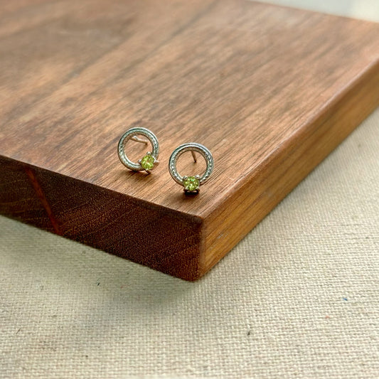 Peridot Heart August Birthstone Sterling Silver Ear Hoop