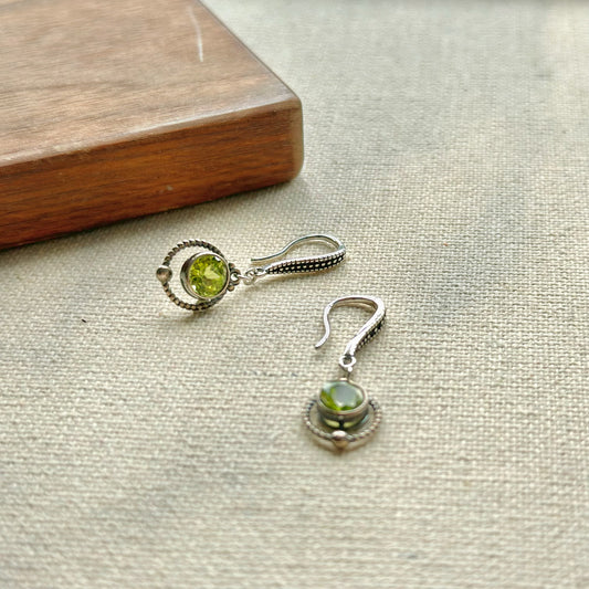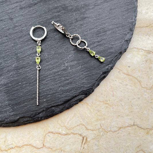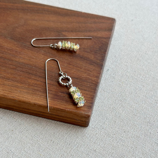 Opal And Peridot Long Ear Hook Sterling Silver Earring