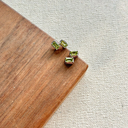 • Peridot And Square Cut Sapphire Gold-plated Sterling Silver Ear Stud