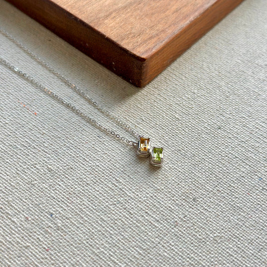 Peridot And Citrine Asymmetric Sterling Silver Necklace