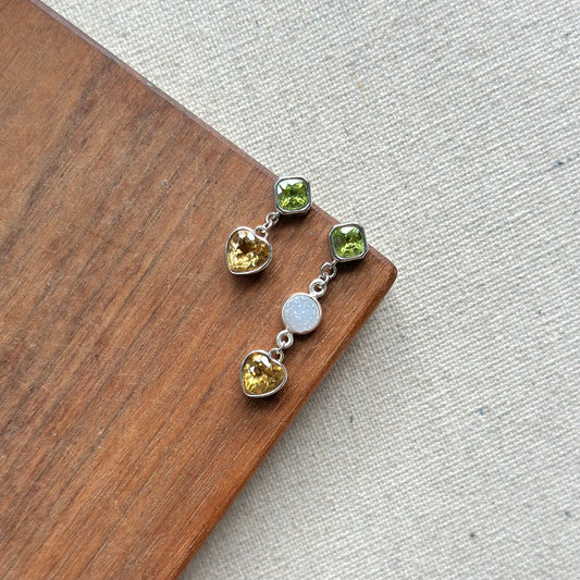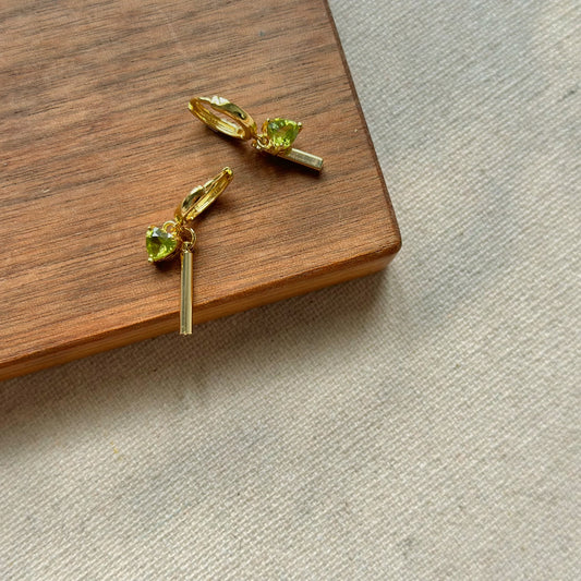 Heart Peridot Dangling Gold-plated Ear Hoop