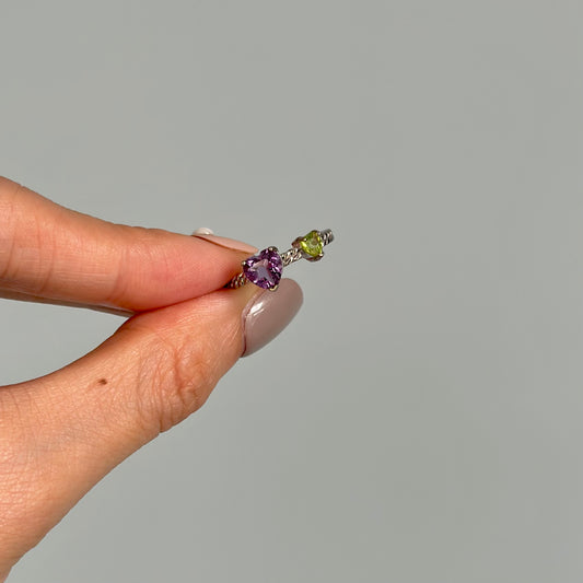 Amethyst And Peridot Heart Adjustable Sterling Silver Ring