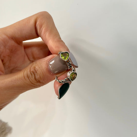 Peridot Heart August Birthstone Chain Sterling Silver Ear Hoop