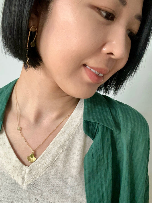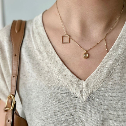 Prehnite Geometric & Asymmetric Gold-plated Italian Sterling Silver Necklace