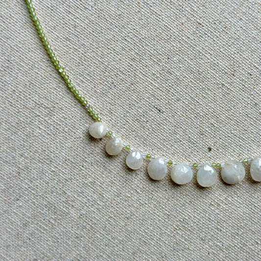 Prehnite And Green Onyx Asymmetric Beaded Necklace