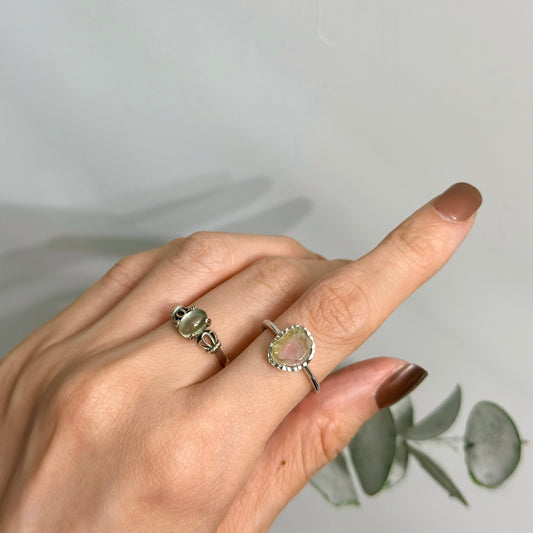 Prehnite Vintage Inspired Adjustable Sterling Silver Ring