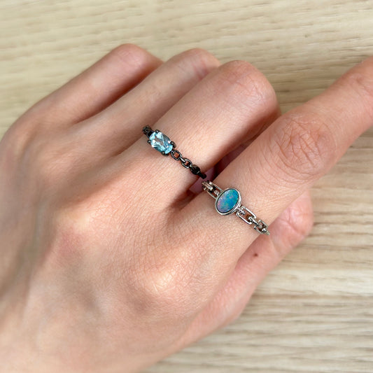 Australian Opal Oval Adjustable Sterling Silver Ring