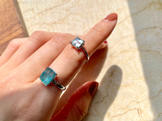 Topaz Stone Prong Setting Adjustable Sterling Silver Ring