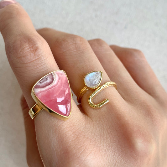 Pink Rhodochrosite Adjustable Gold-plated Ring
