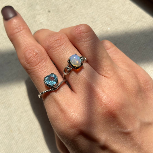Lavender Milky Amethyst Heart Adjustable Sterling Silver Ring