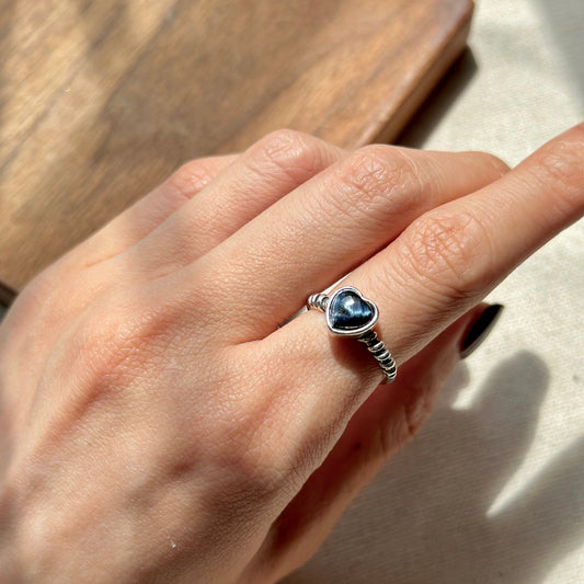 Aquamarine Heart Adjustable Sterling Silver Ring