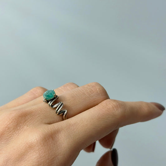 Green Lepidolite Wave Adjustable Sterling Silver Ring