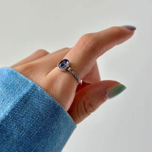 Iolite Cabochon Adjustable Sterling Silver Ring