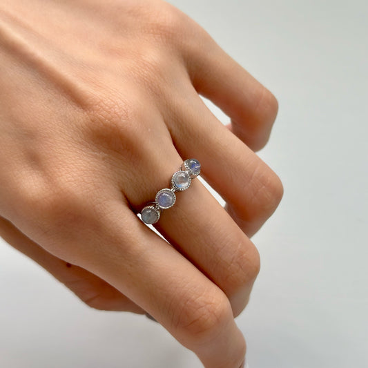 Moonstone June Birthstone Eternity Adjustable Gold-plated Sterling Silver Ring