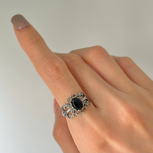 Black Opal Oval Cabochon Adjustable Sterling Silver Ring