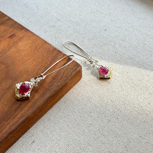 Ruby And Topaz Two Tone Dangle Sterling Silver Earring