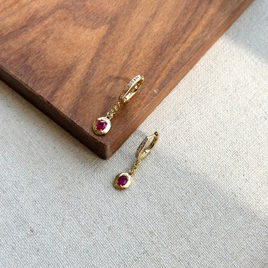 Ruby Mixed Topaz And Dainty Amethyst Hoop Gold-plated Sterling Silver Earring