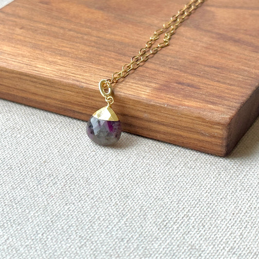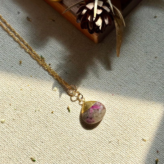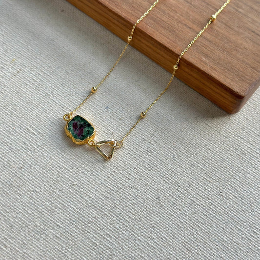 Ruby Zoisite Raw Stone Dotty Chain Gold-plated Necklace
