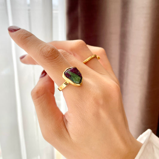 Ruby Zoisite Raw Stone Adjustable Gold-plated Ring