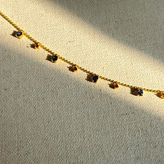 Sapphire And Garnet Dangling Gold-plated Sterling Silver Necklace