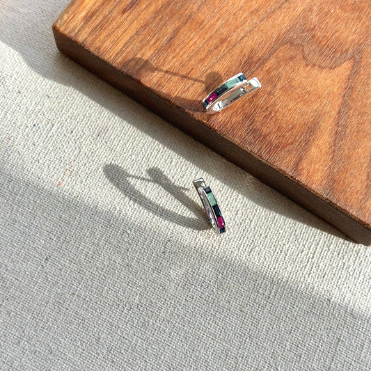 Multi Color Sapphire Sterling Silver Ear Hoop