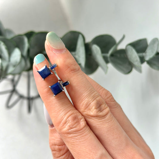 Sapphire September Birthstone Bezel Set Sterling Silver Ear Stud