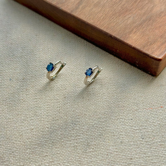 Sapphire September Birthstone Sterling Silver Ear Hoop